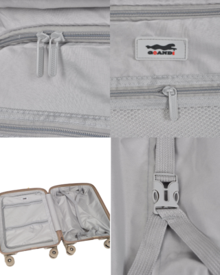 - Куфарът разполага с разширител, който при отваряне увеличава обема му с до 4 см, осигурявайки допълнително пространство при нужда.