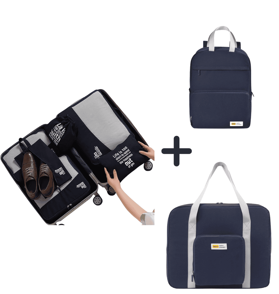 Промо пакетът Delux органайзери + сгъваема раница + сгъваем сак в т.синьо е идеален за удобно и подредено пътуване. Органайзерите са изработени от здрави и леки материали. Те помагат да подредиш дрехи, обувки и аксесоари по най-практичния начин. Всеки елемент има своето място, а това спестява време и пространство.