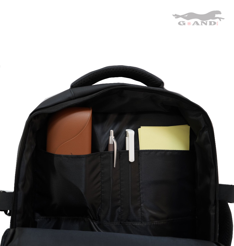 Множество организационни джобове – за документи, техника, аксесоари, бутилка, слушалки и др.